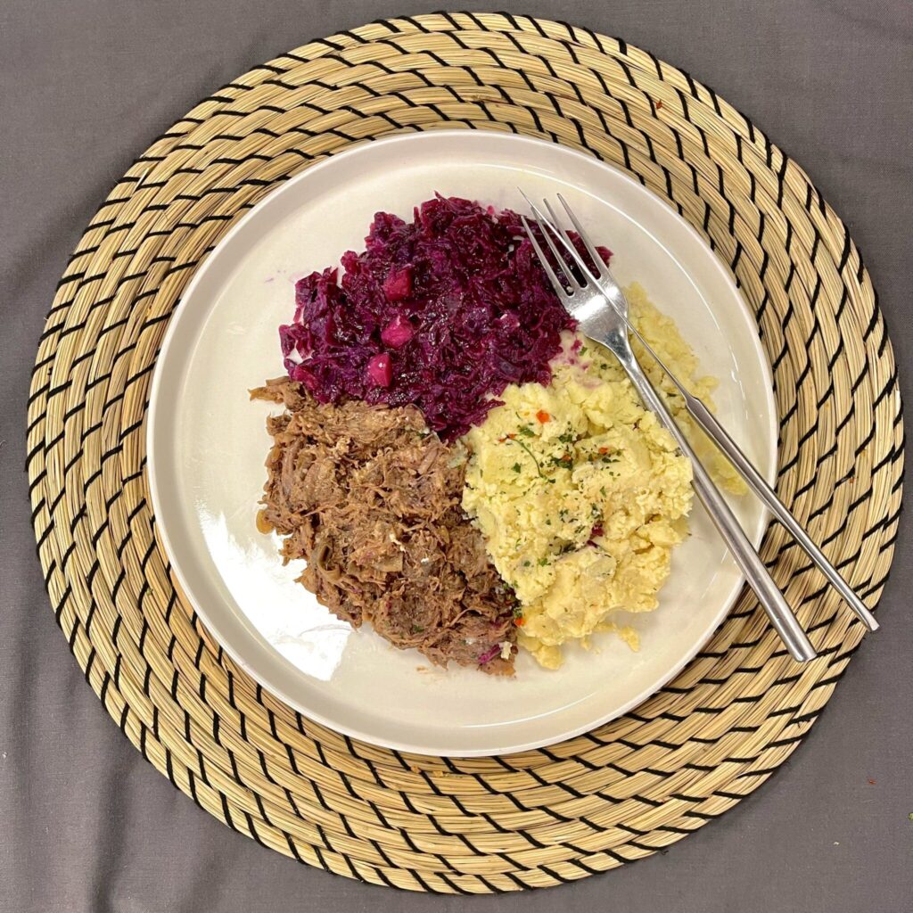 | Ingrediënten | aardappel, (51%), Rundvlees, Rode, kool, appel, water, suiker, ui, stukjes, azijn, (natuur), tomatenpuree, gemodificeerd, zetmeel, (maïs), zout, kruiden, en, specerijen, (laurier, kruidnagel), gekarameliseerde, suiker |