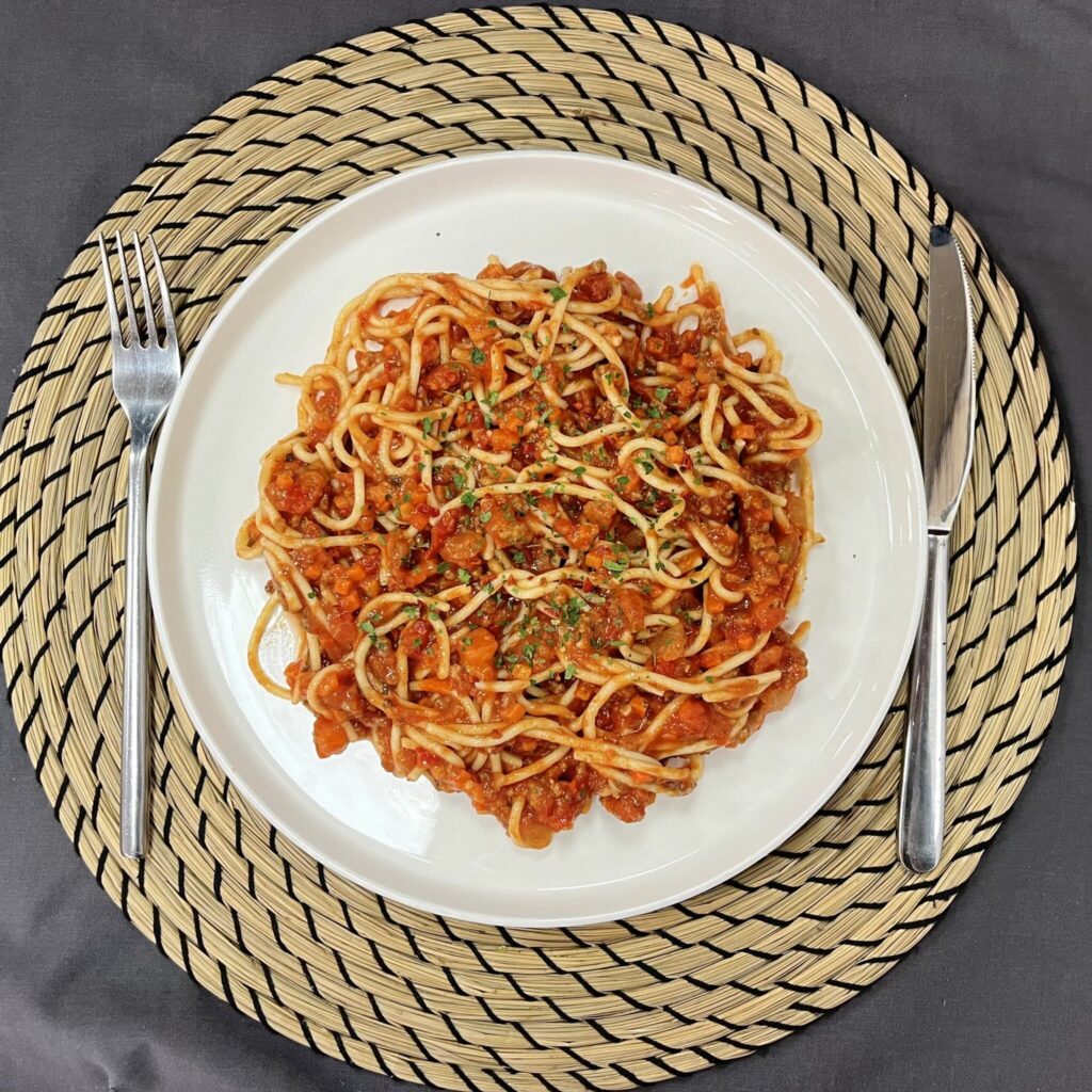 | Ingrediënten | 58%, bolognese, saus, (44%, tomaten, water, 9%, gegaard, rundvlees*, 9%, gezeefde, tomaten, 5%, wortel, 5%, tomatenpuree, suiker, uien, maïszetmeel, zout, mineraalzout, kruiden, natuurlijke, aroma's, (bevat, SELDERIJ), raapzaadolie, specerijen, gistextract), 42%, gekookte, spaghetti, (water, TARWEGRIESMEEL). |